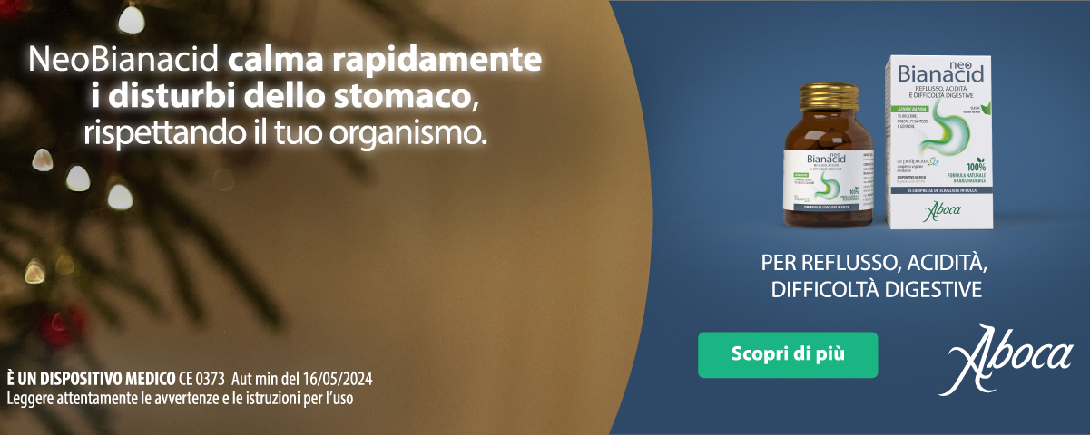 NeoBianacid Aboca è un dispositivo medico formulato con complessi molecolari di origine vegetale e minerale che agiscono formando una barriera protettiva sulla mucosa gastroesofagea.