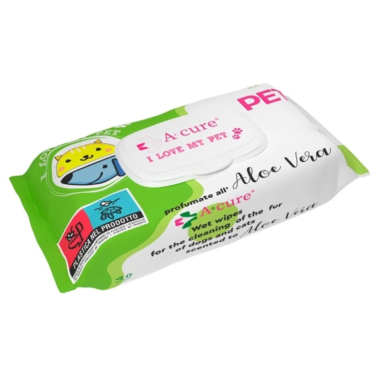 Salviette che detergono e lucidano quotidianamente il pelo di cani, gatti e animali domestici. Sono utili a casa, in auto, per passeggiate all'aperto e quando piove per deodorare, grazie alla delicata profumazione all'Aloe Vera, e rinfrescare l'animale. Non occorre né sciaquare né asciugare.