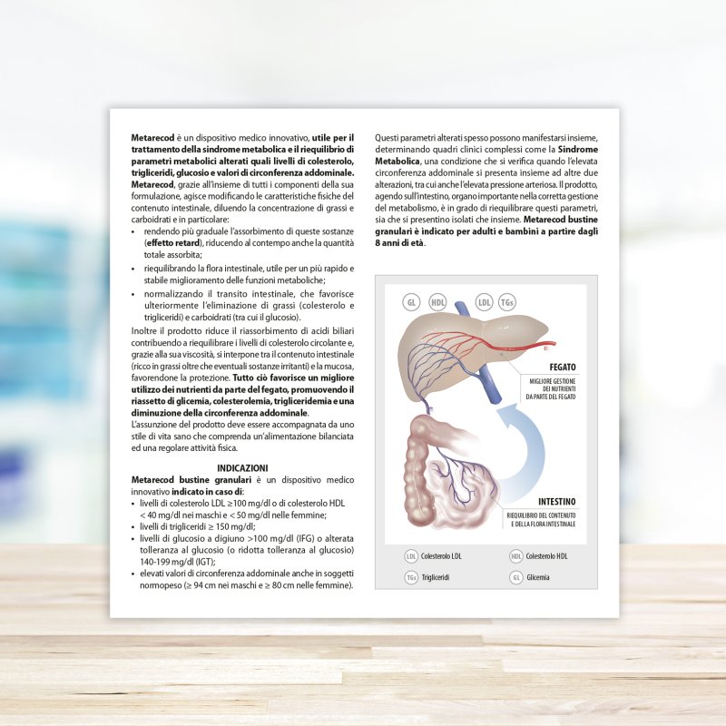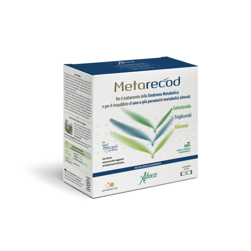 Metarecod è un dispositivo medico utile per il trattamento della sindrome metabolica e il riequilibrio di parametri metabolici alterati quali livelli di colesterolo, trigliceridi, glucosio e valori di circonferenza addominale.