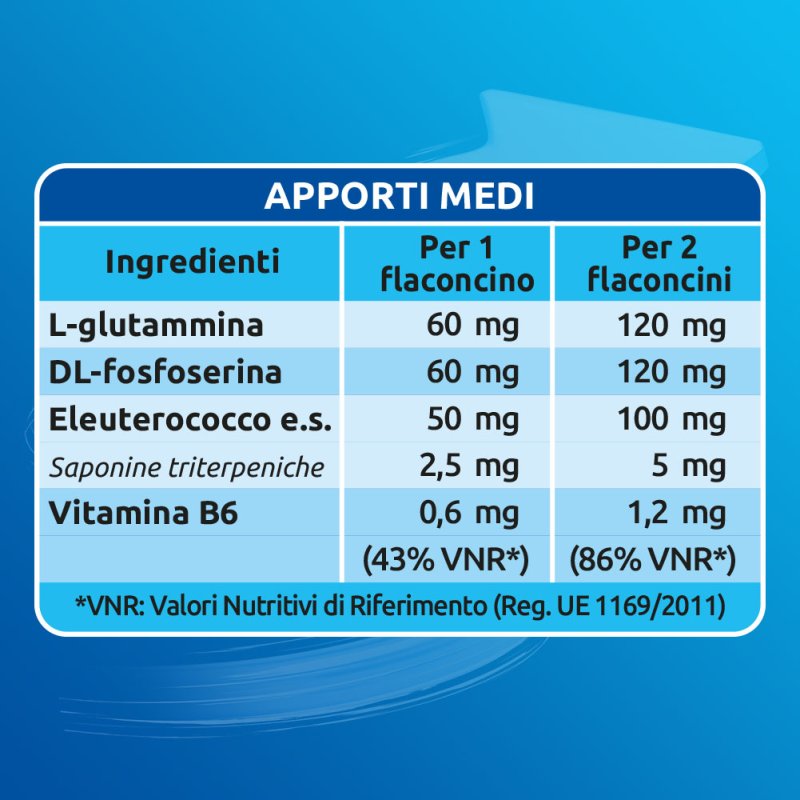 Integratore alimentare di Vitamina B6 con L-glutammina, DL-fosfoserina ed Eleuterococco. L'Eleuterococco è un tonico-adattogeno, che contribuisce alle normali funzioni cognitive ed alla memoria. La Vitamina B6 contribuisce alla riduzione di stanchezza ed affaticamento.