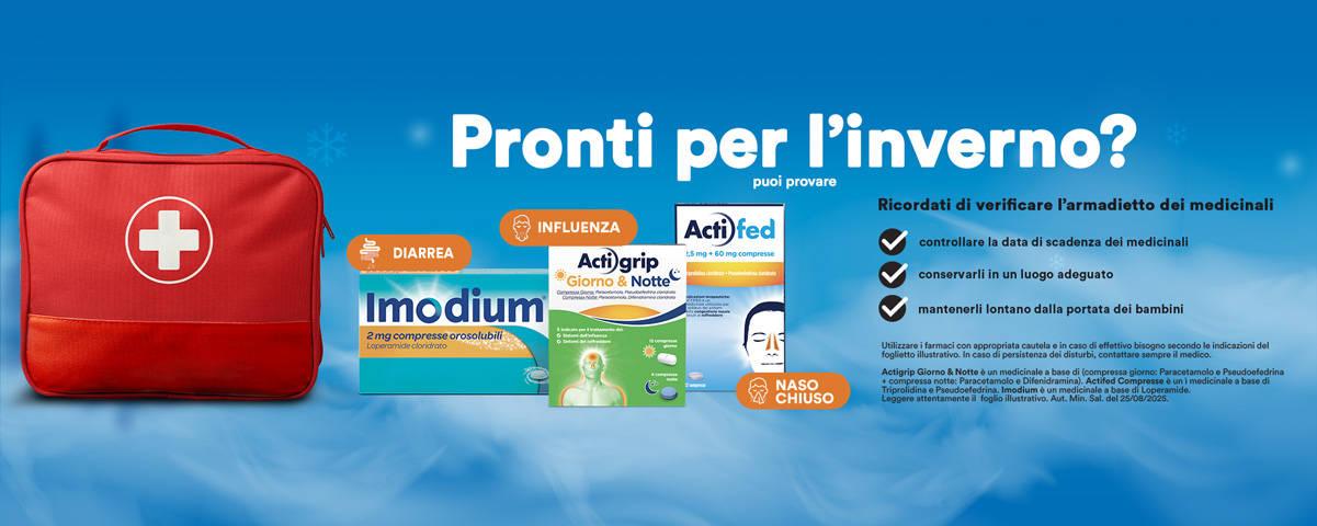 - Actigrip: per il trattamento sintomatico di raffreddore, mal di testa e febbre, combatte la congestione delle vie respiratorie.