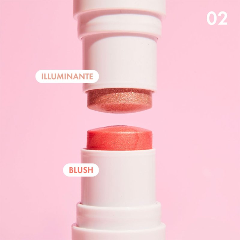 Pratico stick duo con blush e illuminante dalla consistenza cremosa e dal finish brillante per un effetto glow naturale sul viso. Con un mix di oli naturali ricchi in antiossidanti.