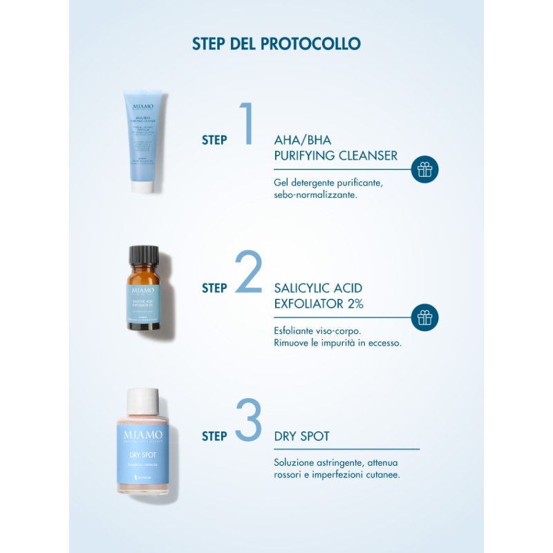 Miamo Cofanetto 2025 Protocollo Sos Brufoli - Dry Spot + AHA\BHA purifying cleanser + Salicylic acid exfoliator 2%
