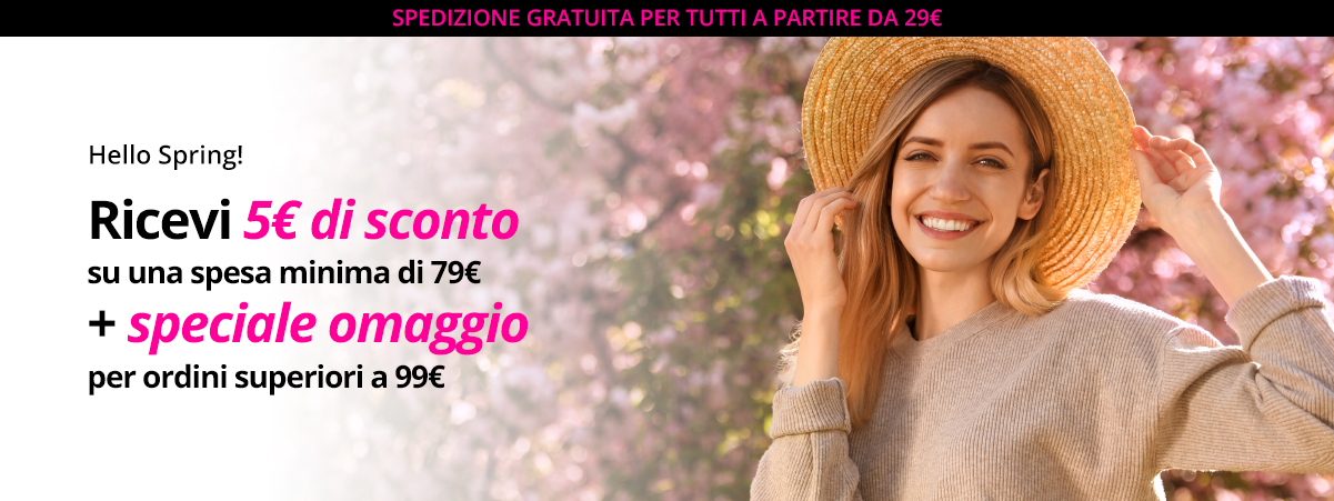 Diamo il benvenuto alla primavera con una promozione speciale: ricevi subito 5€ di sconto su una spesa minima di 79€.