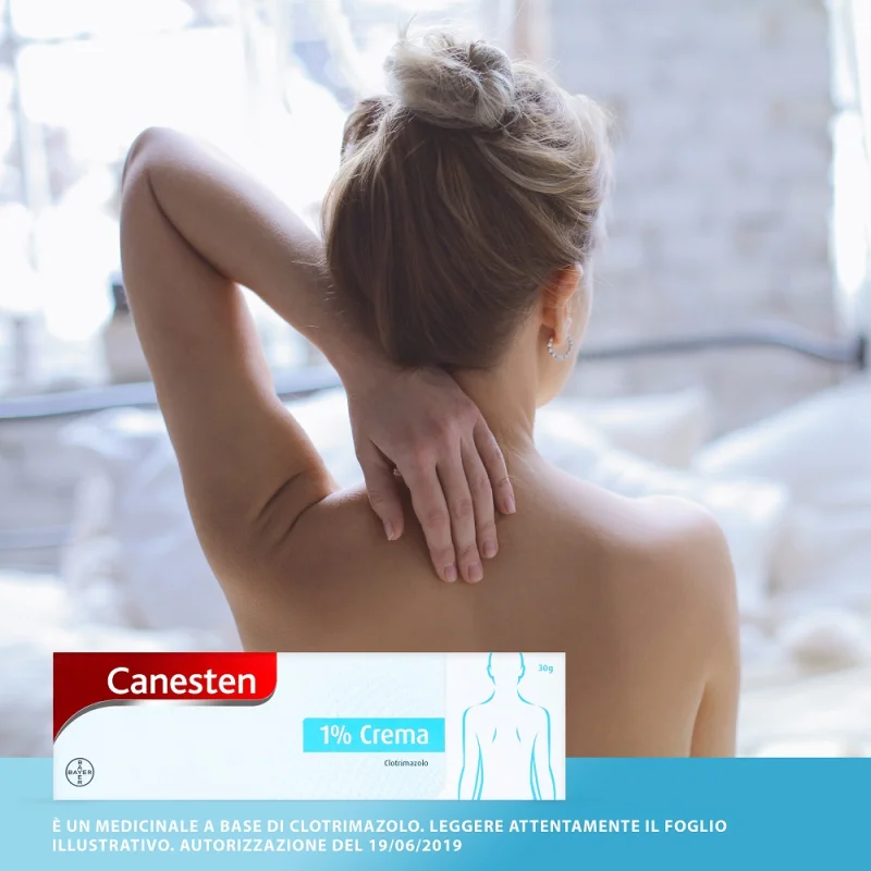 Crema Canesten crema va applicato in piccola quantità 2–3 volte al giorno in corrispondenza della zona affetta, frizionando leggermente, dopo aver lavato ed asciugato accuratamente la parte. Mezzo cm di crema è sufficiente per trattare una superficie delle dimensioni di una mano. La crema è elettivamente indicata per il trattamento delle zone cutanee glabre (senza peli). Spray cutaneo soluzione Lo spray cutaneo soluzione trova utile impiego per il trattamento delle zone cutanee coperte da peli ed in corrispondenza delle pieghe cutanee. E’ inoltre indicato per l’applicazione su ampie aree del corpo (schiena, addome, torace). Canesten spray cutaneo soluzione va nebulizzato uniformemente sulla parte da trattare 2 volte al giorno. Polvere cutanea Canesten polvere va applicato 2–3 volte al giorno, dopo aver lavato ed asciugato accuratamente la zona interessata. Nel piede d’atleta si consiglia di cospargere con Canesten polvere anche l’interno delle calze e delle scarpe. In genere per la scomparsa delle manifestazioni, è sufficiente un periodo di trattamento senza interruzione di tre–quattro settimane. Al fine di consolidare i risultati terapeutici ottenuti ed evitare reinfezioni, è opportuno proseguire la terapia con Canesten per almeno due settimane dopo la scomparsa delle manifestazioni.