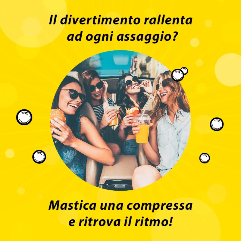 Compresse masticabili effervescenti da assumere senza acqua al bisogno.