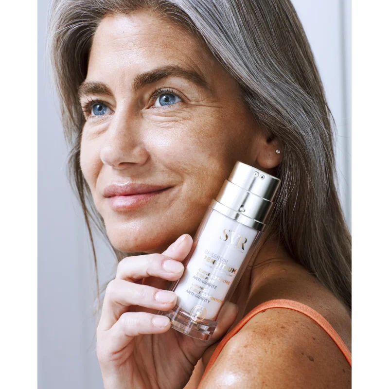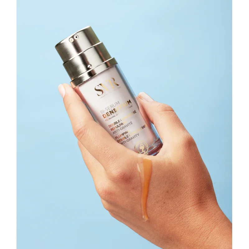 SVR Densitium Bi-Serum, è il primo siero che sfida le leggi di gravità. La sua doppia furmula, contiene una concentrazione record di principi attivi dermatologici per combattere i 3 principali problemi della pelle matura: rilassamento cutaneo, rughe e secchezza estrema.