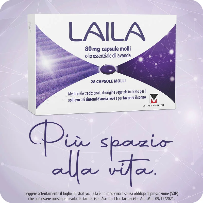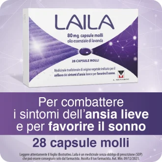 Laila è un medicinale tradizionale di origine vegetale indicato per il sollievo dei sintomi d’ansia lieve e per favorire il sonno. L’impiego di questo medicinale tradizionale di origine vegetale, per le indicazioni terapeutiche indicate, si basa esclusivamente sull’esperienza di utilizzo pluriennale. Laila è indicato negli adulti e negli adolescenti a partire da 12 anni.