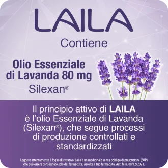 Posologia Gli adulti e gli adolescenti di età superiore ai 12 anni assumono una capsula molle al giorno (corrispondente a 80 mg di olio essenziale di lavanda al giorno). Popolazione pediatrica Laila non deve essere usato nei bambini al di sotto di 12 anni (vedere paragrafo 4.4 Avvertenze speciali e precauzioni d’impiego). Modo di somministrazione Uso orale. Le capsule molli devono essere ingerite intere con sufficiente liquido (preferibilmente un bicchiere di acqua). Durata di trattamento Se i sintomi persistono dopo due settimane di impiego del prodotto, occorre consultare un medico o un operatore sanitario qualificato.