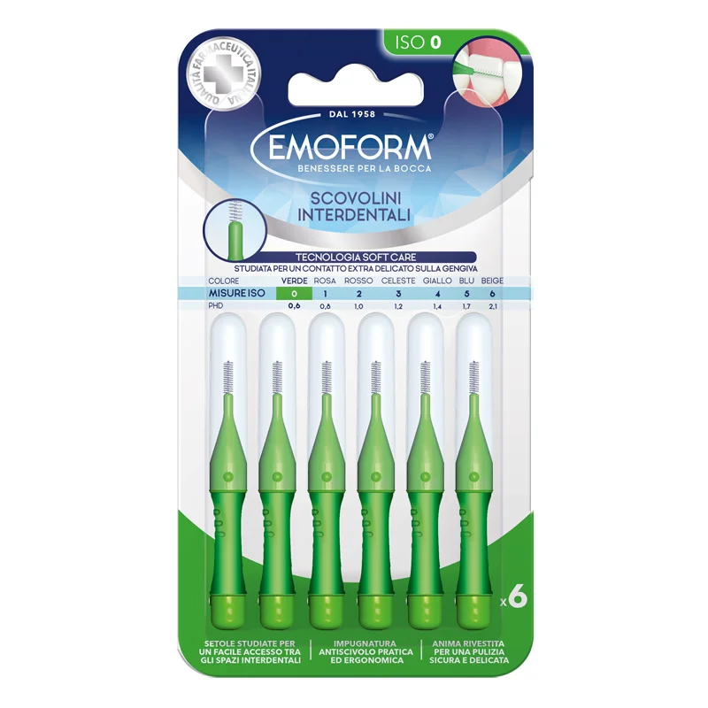 Scovolino dotato di setole studiate appositamente per arrivare su tutti gli spazi interdentali, con tecnologia Soft Care per un contatto delicato su gengiva e dente.