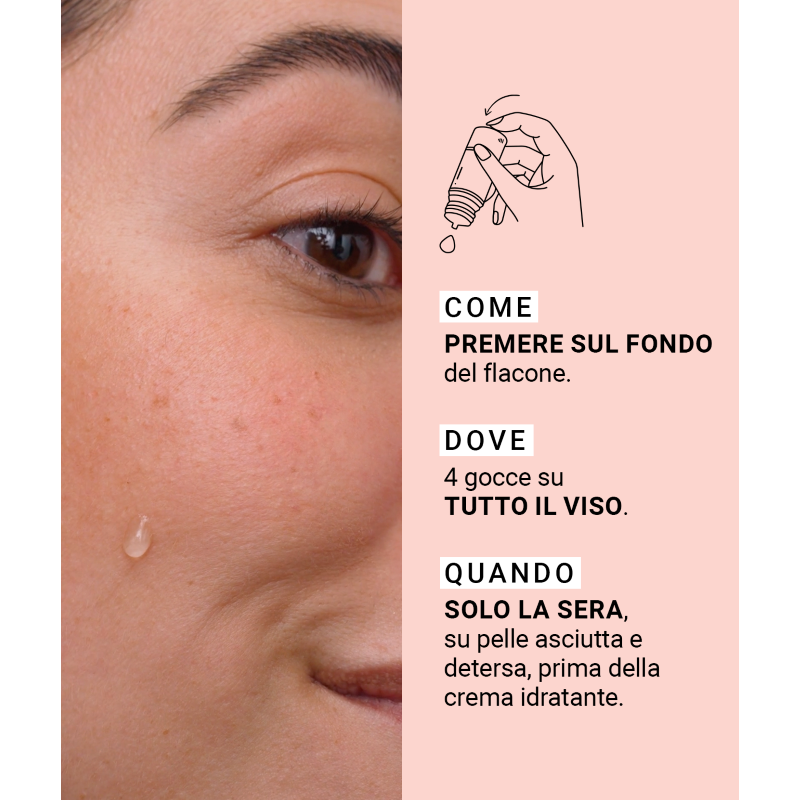 La sera, applicare sul viso deterso ed asciutto, prima di applicare la crema.