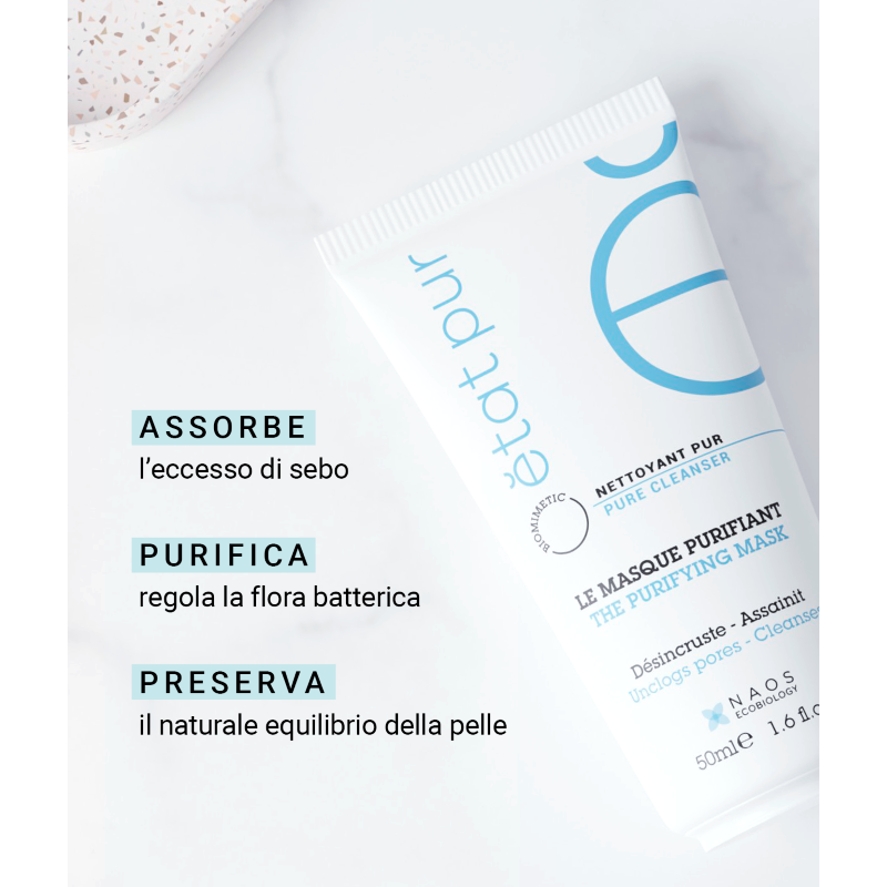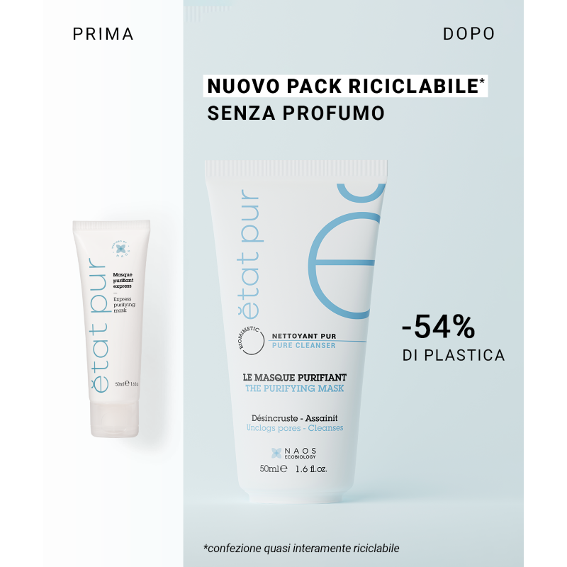 Etat Pur Maschera Purificante Viso è la maschera levigante, capace di ridurre impurità e sebo in eccesso, anche in caso di pelle mista e grassa.