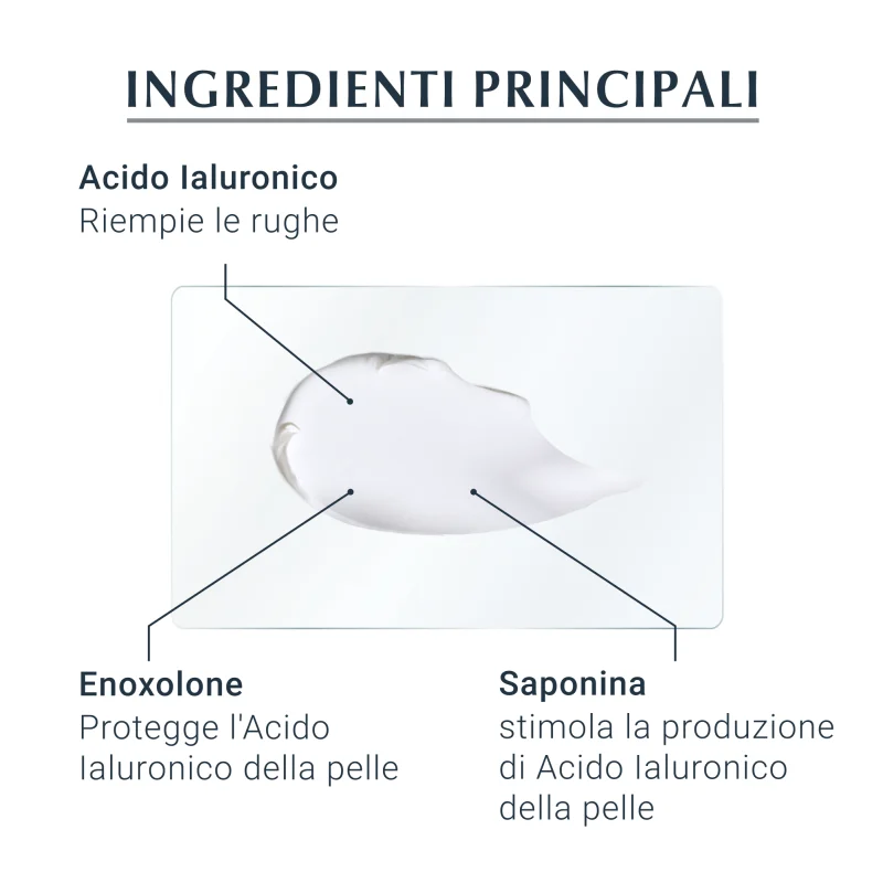 Eucerin Hyaluron Filler + 3X Effect Crema Notte è un trattamento intensivo antirughe. Effetto immediatamente visibile: l’Acido Jaluronico dona immediatamente volume e tono alla pelle e riduce visibilmente le rughe. Riempie le rughe dall’interno: la Saponina, un glucoside bioattivo, stimola la naturale produzione di Acido Jaluronico negli strati più profondi della pelle. Dona tono al tessuto connettivo rilassato, causa della formazione delle rughe Riempie dall’interno anche le rughe profonde.