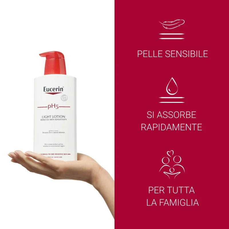 Eucerin pH5 Emulsione Idratante Extra Leggera protegge e idrata la pelle.