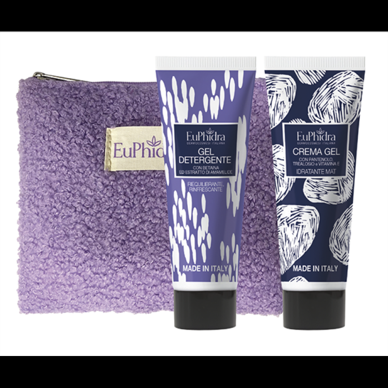 Gel detergente viso + Crema gel viso + Beauty pochette