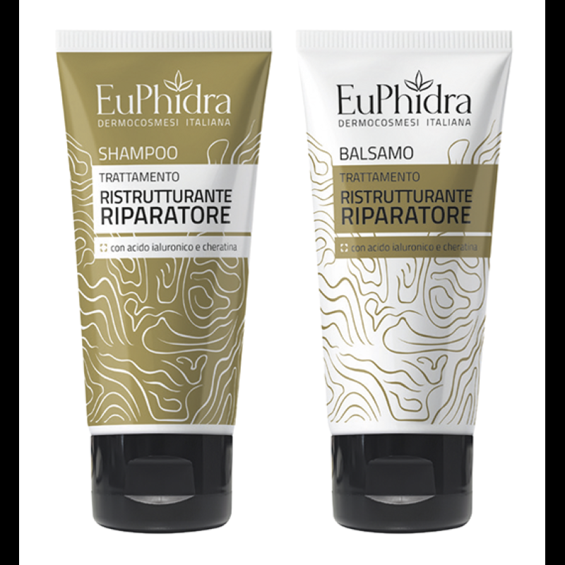 Euphidra Balsamo Trattamento Ristrutturante Riparatore con acido ialuronico, proteina della seta e aminoacidi di cheratina, restituisce morbidezza, vigore e brillantezza ai capelli trattati da colorazioni e sfibrati da trattamenti, quali permanenti, stirature chimiche, utilizzo di piastra e phon.
