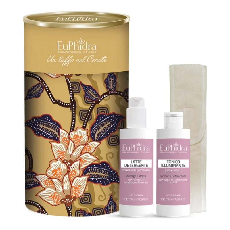 Euphidra Cofanetto di Natale Un tuffo nel Cenote - Kit Viso Detersione - Latte detergente + Tonico Illuminante + Fascia capelli