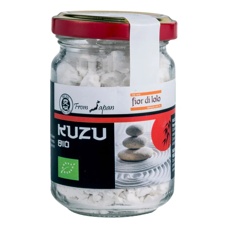sciogliere 1 cucchiaino di kuzu in 200 ml, far bollire a fuoco basso fino a che diventa una gelatina trasparente e poi utilizzare.