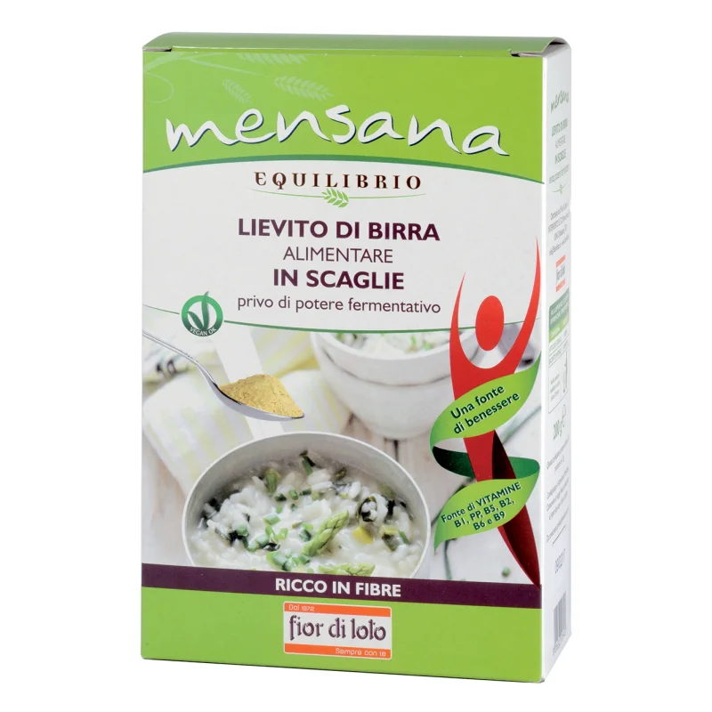 Lievito alimentare biologico in scaglie con farina di malto d'orzo, fonte di vitamine B1, B2, zinco, magnesio e ad alto contenuto di fibre.