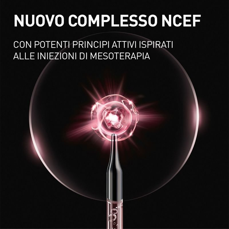 La sua efficacia antietà è garantita dalla tecnologia NCEF, composta da 10 attivi utilizzati nelle iniezioni rivitalizzanti, in grado di levigare ed uniformare il contorno occhi.