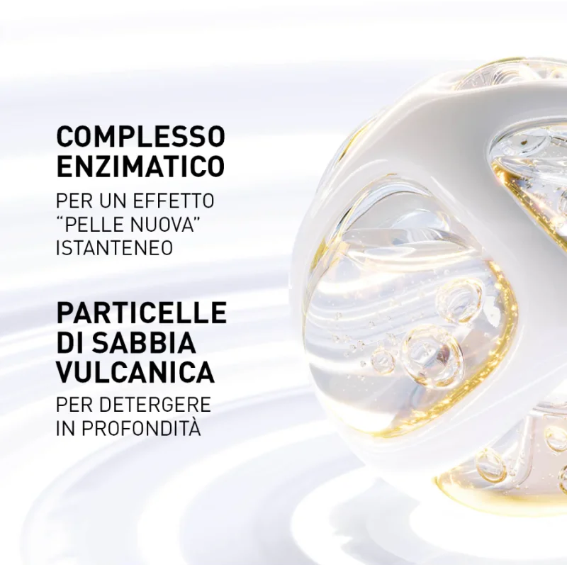 Inoltre, le particelle di sabbia vulcanica, garantiscono un'azione esfoliante meccanica, volta ad eliminare le cellule morte e a favorire il rinnovamento cellulare.