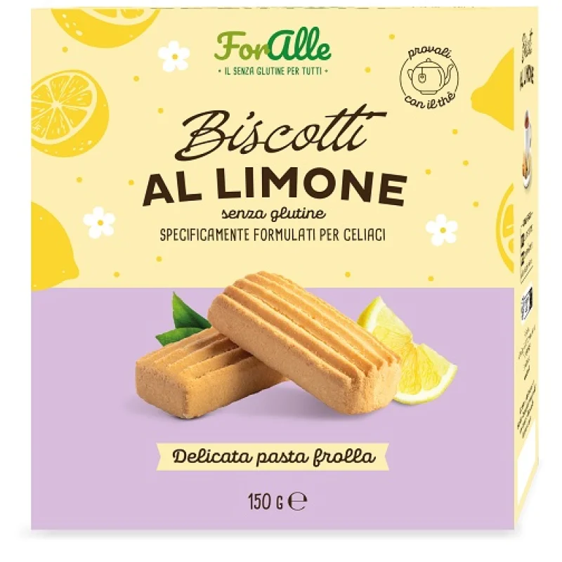Farina di riso, fecola di patate, zucchero, margarina vegetale [grassi vegetali (80%)(palma), acqua, emulsionante (E471), sale (0,3%), correttore di acidità (E330), uova intere fresche pastorizzate, acqua, glucosio in polvere, amido di patata modificato; addensanti: farina di semi di guar; agenti lievitanti (difosfato disodico, carbonato acido di sodio); fibra vegetale: inulina; oli essenziali di limone 0,5%; addensante: E464 (idrossi-propil-metilcellulosa).
