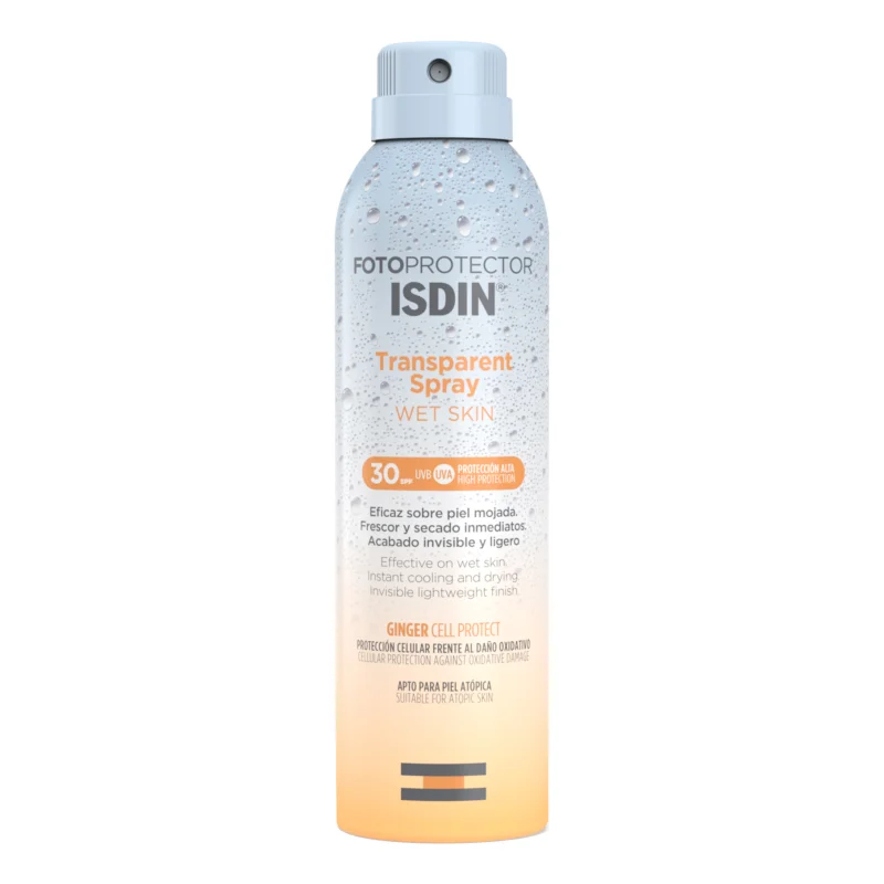 Isdin Fotoprotector Trasparent Spray Wet Skin SPF30 è una protezione solare alta adatta per il corpo in spray trasparente, fresco ed a rapido assorbimento.