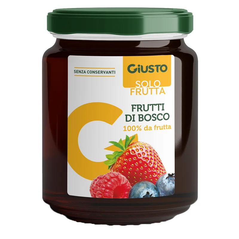 Frutti di bosco 51,5% (more, fragole, lamponi, mirtilli), zucchero d'uva; gelificante: pectina da frutta; acidificante: succo di limone concentrato.