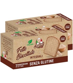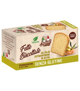 Fette biscottate integrali senza glutine e senza lattosio, preparate con ingredienti di alta qualità. Adatte a persone celiache, vegane e allergiche ai principali allergeni alimentari. A basso contenuto di grassi saturi e di zuccheri, confezionate in pratiche monoporzioni da due fette.