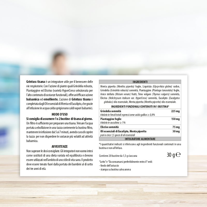 *I quantitativi indicati si riferiscono agli ingredienti funzionali contenuti in una bustina e non all’infuso.