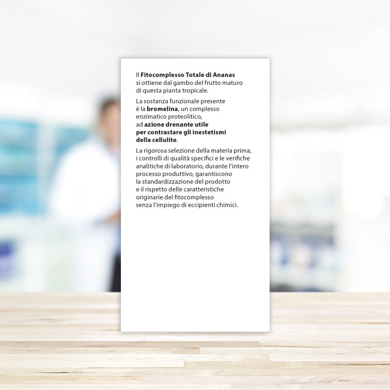 Il Fitocomplesso Totale di Ananas si ottiene dal gambo del frutto maturo di questa pianta tropicale. La sostanza funzionale presente è la bromelina, un complesso enzimatico proteolitico, ad azione drenante utile per contrastare gli inestetismi della cellulite.
