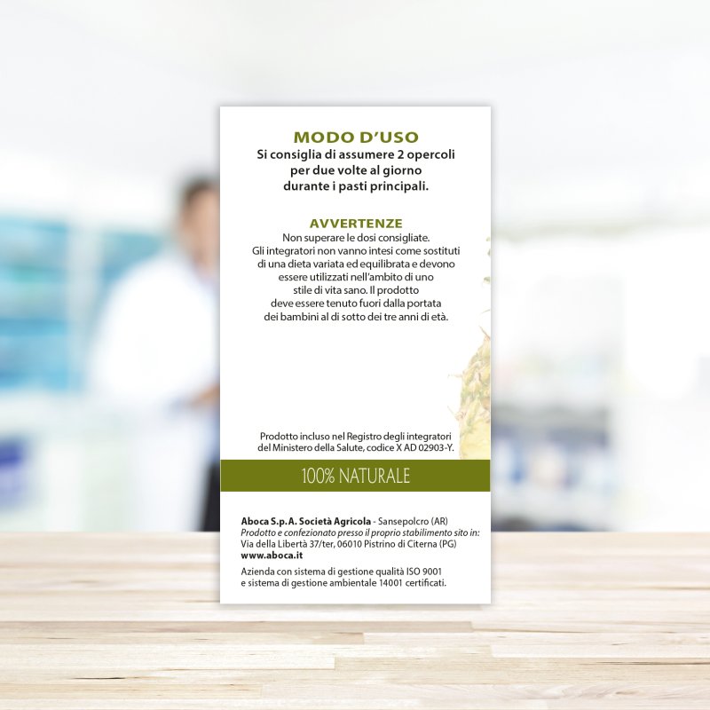 La rigorosa selezione della materia prima, i controlli di qualità specifici e le verifiche analitiche di laboratorio, durante l’intero processo produttivo, garantiscono la standardizzazione del prodotto e il rispetto delle caratteristiche originarie del fitocomplesso senza l’impiego di eccipienti chimici.