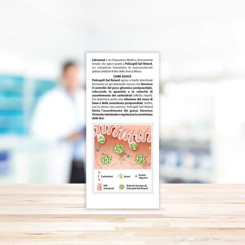 Libramed è un dispositivo medico utile per il trattamento del sovrappeso e dell'obesità di adulti e bambini al di sopra degli 8 anni, essendo in grado di agire rallentando e riducendo la quantità e la velocità di assorbimento di grassi e carboidrati.