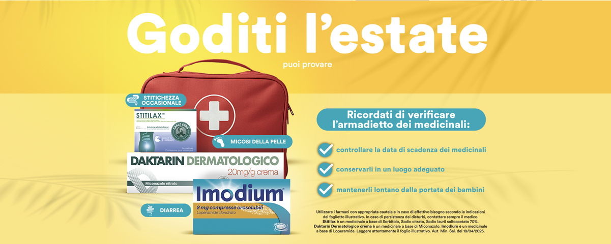 Imodium: a base di loperamide cloridrato, agisce sull'intestino riducendo i movimenti intestinali. È indicato per il trattamento sintomatico delle diarree occasionali.