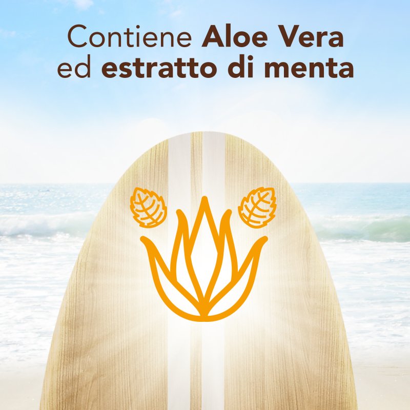Latte doposole rinfrescante e lenitivo, con aloe vera ed estratto di menta. Idrata per 24 ore aiutando a ripristinare il naturale equilibrio idrolipidico della pelle stressata dal sole. Aiuta a prevenire la desquamazione per un'abbronzatura più duratura. Si assorbe rapidamente e non unge. Effetto rinfrescante, immediato e duraturo.