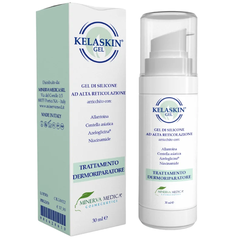 L’aspetto innovativo di KELASKIN GEL è nel veicolo, costituito da una matrice siliconica reticolata che si lega allo strato fibroso della cicatrice, rilasciando gli attivi direttamente nello strato dermico sottostante in modo controllato e direzionato.