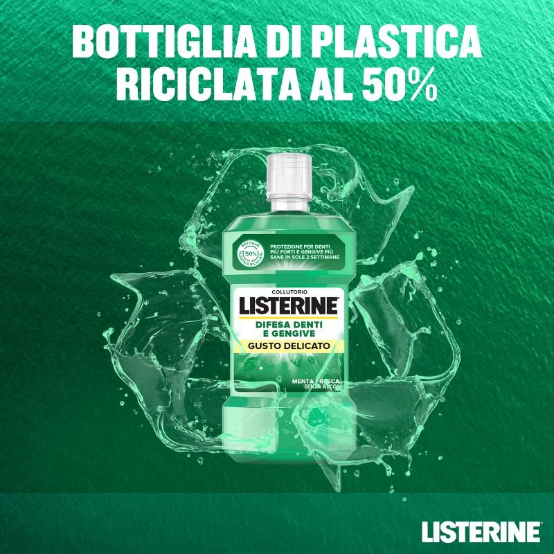 Listerine Difesa Denti e Gengive Collutorio Zero Alcol dona protezione per denti e gengive più sane e una sensazione di pulizia 3 volte più duratura rispetto al solo spazzolino.