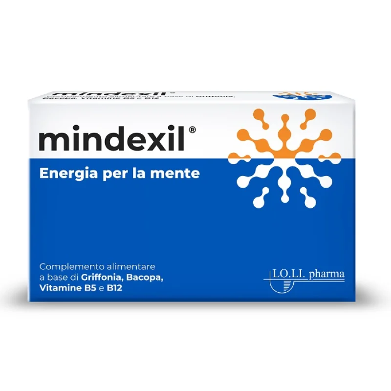 Complemento alimentare a base di griffonia, bacopa, vitamine B5 e B12. Utile per apportare una quota integrativa dei componenti in esso contenuti in caso di ridotto apporto con la dieta o di aumentato fabbisogno. Mindexil, grazie alla presenza di griffonia e bacopa, favorisce il normale benessere mentale. Inoltre la vitamina B5 contribuisce alla riduzione del senso di stanchezza e affaticamento. La vitamina B12 contribuisce al normale funzionamento del sistema nervoso e della funzione psicologica.