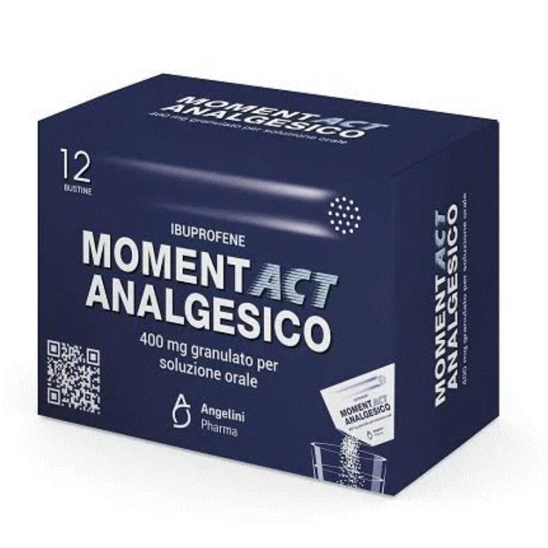• In pazienti asmatici il prodotto deve essere utilizzato con cautela, dopo aver consultato il medico. • L’uso di MOMENTACT ANALGESICO, come di qualsiasi farmaco inibitore della sintesi delle prostaglandine e della cicloossigenasi è sconsigliato nelle donne che intendano iniziare una gravidanza. • La somministrazione di MOMENTACT ANALGESICO dovrebbe essere sospesa nelle donne che hanno problemi di fertilità o che sono sottoposte a indagini sulla fertilità. • L’uso di MOMENTACT ANALGESICO deve essere evitato in concomitanza di FANS, inclusi gli inibitori selettivi della COX–2. • Gli effetti indesiderati possono essere minimizzati con l’uso della più bassa dose efficace per la più breve durata possibile di trattamento che occorre per controllare i sintomi (vedi i paragrafi sottostanti sui rischi gastrointestinali e cardiovascolari). • Effetti cardiovascolari e cerebrovascolari: studi clinici e dati epidemiologici suggeriscono che l’uso di ibuprofene, specialmente ad alti dosaggi (2400 mg/die) e per trattamenti di lunga durata, può essere associato ad un modesto aumento del rischio di eventi trombotici arteriosi (p.es. infarto del miocardio o ictus). In generale, gli studi epidemiologici non suggeriscono che basse dosi di ibuprofene (per es. ≤ 1200 mg/die) siano associate ad un aumento del rischio di infarto del miocardio. • Negli adolescenti disidratati esiste il rischio di alterazione della funzionalità renale. • Anziani: i pazienti anziani hanno un aumento della frequenza di reazioni avverse i FANS, specialmente emorragie e perforazioni gastrointestinali, che possono essere fatali (vedi sezione 4.2). • Emorragia gastrointestinale, ulcerazione e perforazione: durante il trattamento con tutti i FANS, in qualsiasi momento, con o senza sintomi di preavviso o precedente storia di gravi eventi gastrointestinali, sono state riportate emorragia gastrointestinale, ulcerazione e perforazione, che possono essere fatali. • Negli anziani e in pazienti con storia di ulcera, soprattutto se complicata da emorragia o perforazione (vedi sezione 4.3), il rischio di emorragia gastrointestinale, ulcerazione o perforazione è più alto con dosi aumentate di FANS. Questi pazienti devono iniziare il trattamento con la più bassa dose disponibile. L’uso concomitante di agenti protettori (misoprostolo o inibitori di pompa protonica) deve essere considerato per questi pazienti e anche per pazienti che assumono basse dose di aspirina o altri farmaci che possono aumentare il rischio di eventi gastrointestinali (vedi sotto e la sezione 4.5). • Pazienti con storia di tossicità gastrointestinale, in particolare anziani, devono riferire qualsiasi sintomo gastrointestinale inusuale (soprattutto emorragia gastrointestinale) in particolare nelle fasi iniziali del trattamento. • Controllare attentamente i pazienti che assumono farmaci concomitanti che potrebbero aumentare il rischio di ulcerazione o emorragia, come corticosteroidi orali, anticoagulanti come warfarin, inibitori selettivi del reuptake della serotonina (SSRI) o agenti antiaggreganti come l’aspirina (vedi sezione 4.5). • Quando si verifica emorragia o ulcerazione gastrointestinale in pazienti che assumono MOMENTACT ANALGESICO il trattamento deve essere sospeso. • I FANS devono essere somministrati con cautela nei pazienti con una storia di malattia gastrointestinale (colite ulcerosa, morbo di Crohn) poiché tali condizioni possono essere esacerbate (vedi sezione 4.8). • Cautela è richiesta prima di iniziare il trattamento nei pazienti con anamnesi positiva per ipertensione e/o insufficienza cardiaca poiché in associazione al trattamento con i FANS sono stati riscontrati ritenzione di liquidi, ipertensione ed edema. • Gravi reazioni cutanee alcune delle quali fatali, includenti dermatite esfoliativa, sindrome di Stevens–Johnson e necrolisi tossica epidermica, sono state riportate molto raramente in associazione con l’uso dei FANS (vedi sezione 4.8). Nelle prime fasi della terapia i pazienti sembrano essere a più alto rischio: l’insorgenza della reazione si verifica nella maggior parte dei casi entro il primo mese di trattamento. MOMENTACT ANALGESICO deve essere interrotto alla prima comparsa di rash cutaneo, lesioni della mucosa o qualsiasi altro segno di ipersensibilità. • MOMENTACT ANALGESICO contiene: – saccarosio: pazienti con problemi di rara malattia ereditaria al fruttosio, malassorbimento di glucosio e galattosio o da insufficienza di saccarasi–isomaltasi non devono assumere questo medicinale. – 45 mg di sodio (1,9 mmoli) per bustina. Da tenere in considerazione in persone con ridotta funzionalità renale o che seguono una dieta iposodica. – 90 mg di potassio (2,3 mmoli) per bustina. Da tenere in considerazione in persone con ridotta a funzionalità renale o che seguono una dieta ipopotassica. – aspartame, una fonte di fenilalanina, perciò è controindicato nei soggetti affetti da fenilchetonuria (vedi sezione 4.3).