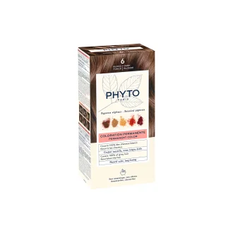 Phyto Phytocolor Colorazione Permanente Tinta Numero 6 colora naturalmente la fibra assicurando un risultato di colorazione intensa, naturale e ricca di riflessi luminosi. Con un minimo di sette pigmenti per nuance, rappresenta la prima colorazione permamente ai pigmenti vegetali che non contiene ammoniaca. Copre il 100% dei capelli bianchi a partire dalla prima applicazione e non sbiadisce.