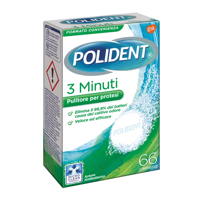Le compresse di Polident 3 Minuti eliminano la maggior parte dei batteri responsabili dei cattivi odori e contribuiscono a eliminare le macchie resistenti e a ridurre la placca, lasciando la protesi pulita, fresca e luminosa ogni giorno.