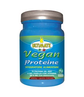 Integratore in polvere di proteine al gusto cioccolato e nocciola, con cacao magro, ideale per contribuire al mantenimento del tono muscolare, grazie all'alto contenuto di proteine di origine vegetale, provenienti da riso e piselli.