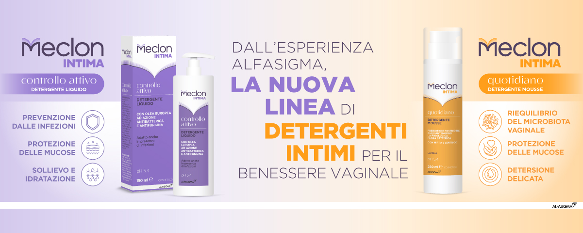 - Meclon Intima Controllo Attivo: ideale per prevenire le infezioni, proteggere le mucose e donare sollievo dalle irritazioni.