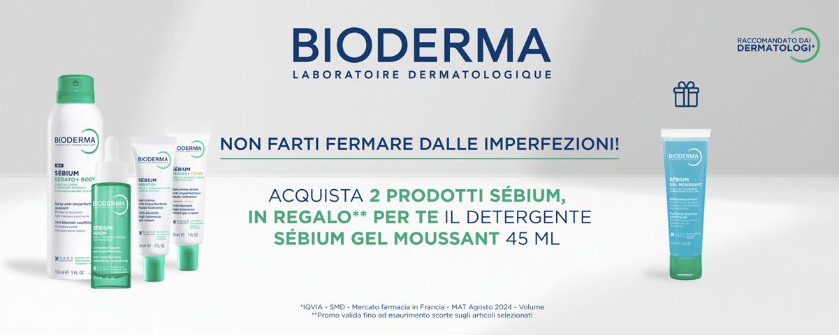 Da oggi, solo su Farmacia del Corso, acquistando 2 prodotti Sébium, ricevi in omaggio Sébium Gel Moussant 45 ml, il detergente delicato perfetto come primo step della tua skincare routine.