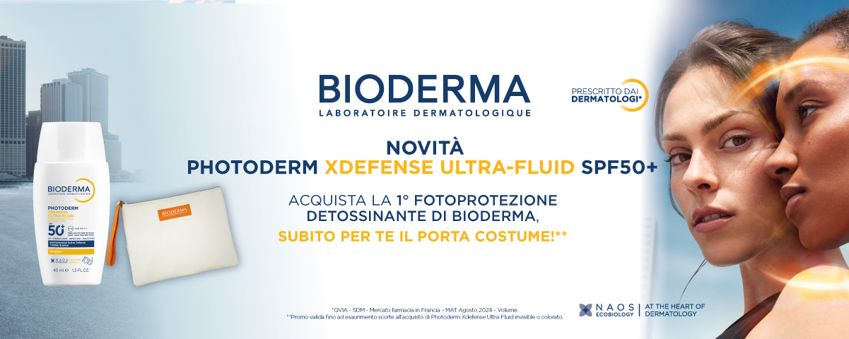 Photoderm XDEFENSE Ultra-Fluid SPF50+ è il primo solare Bioderma che unisce protezione molto alta a una azione detossinante avanzata. La texture si assorbe immediatamente, scompare all’istante senza lasciare residui biancastri o untuosità, e regala un piacevole effetto opacizzante che dura a lungo.