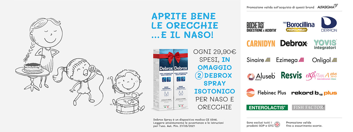 Da oggi solo su Farmacia Del Corso, se spendi 29.90€ di prodotti aderenti alla promozione, ricevi subito in omaggio due confezioni di Debrox Spray!