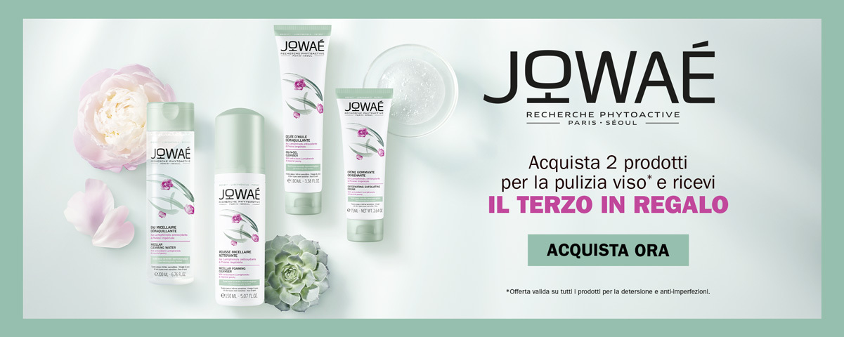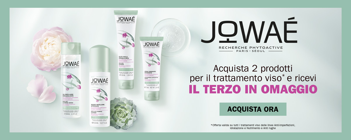 Scopri l'efficacia dei trattamenti fitoattivi a base di ingredienti vegetali approfittando della nuovissima promo: aggiungi al carrello 3 prodotti Jowae, il meno caro è in omaggio!