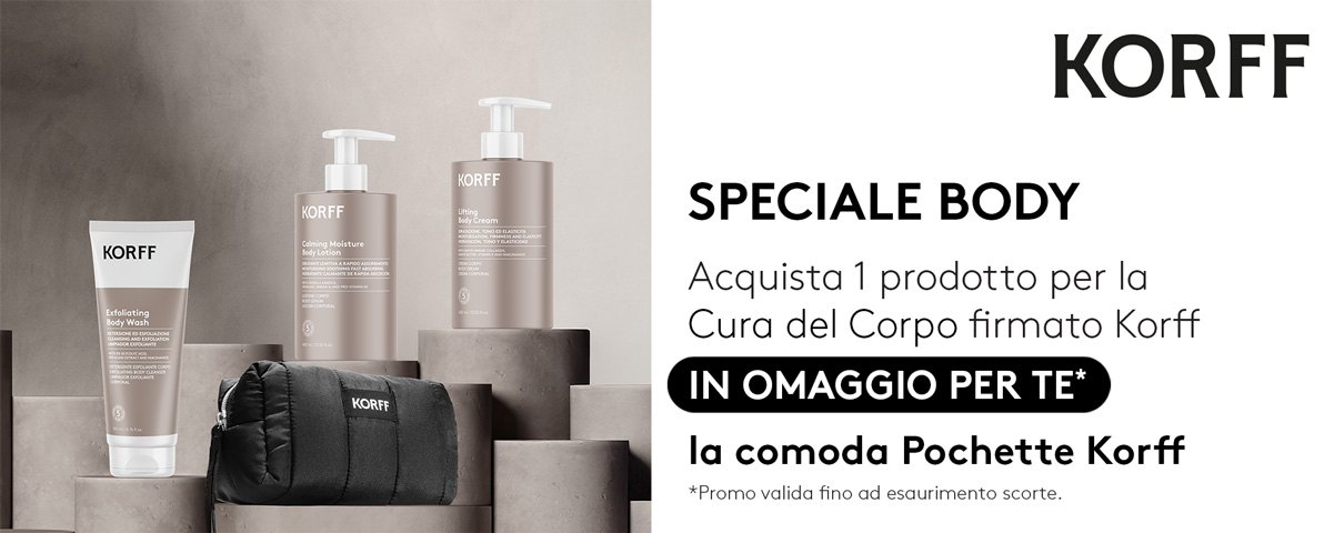 Da oggi acquistando un prodotto corpo Korff ricevi subito in omaggio la comoda Pochette!