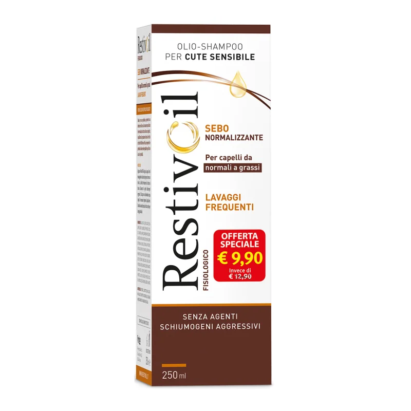 Azione sebonormalizzante, ideale per tutti i tipi di capelli e perlavaggi frequenti. RestivOil Fisiologico, ideale per uso quotidiano, permette unadetersione efficace e allo stesso tempo delicata che normalizza la struttura del cuoiocapelluto, riequilibrando la produzione di sebo. Arricchito con Estratto di Bardana eOrtica, componenti specifici che potenziano l’azione sebo-regolatrice e sebo-normalizzante, assicurando profonda igiene al cuoio capelluto grazie alleproprietà dermo-purificanti. Ideale per capelli da normali a grassi.