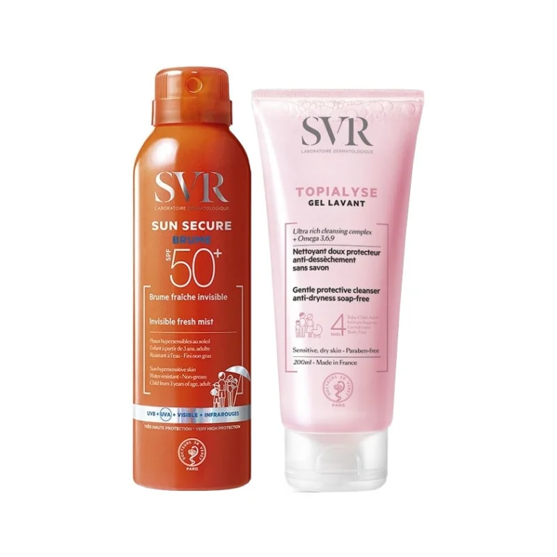 SUN SECURE Brume Viso e Corpo SPF 50 Protezione Solare Alta 200 ml + Topialyse Gel Lavante
